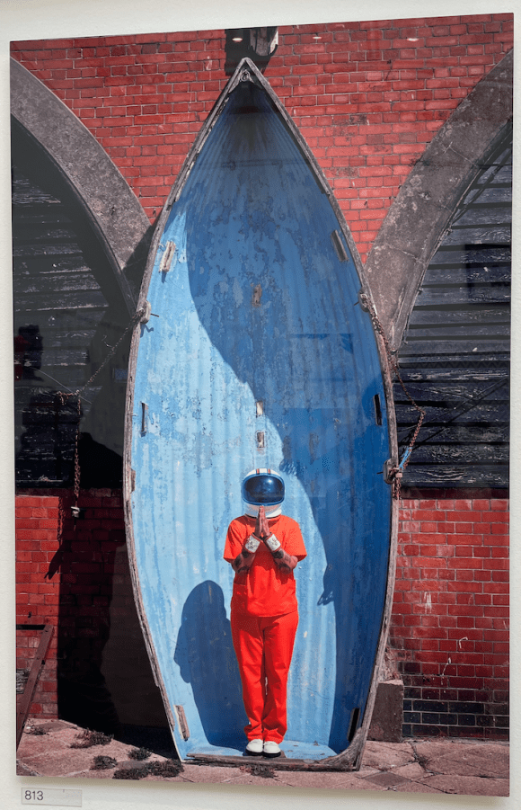 Exhibitions are always packed with visual story starters. And, for me, Lola Flash’s photo of a mysterious praying figure against an upturned boat has the hallmarks of a cracking opening image.
