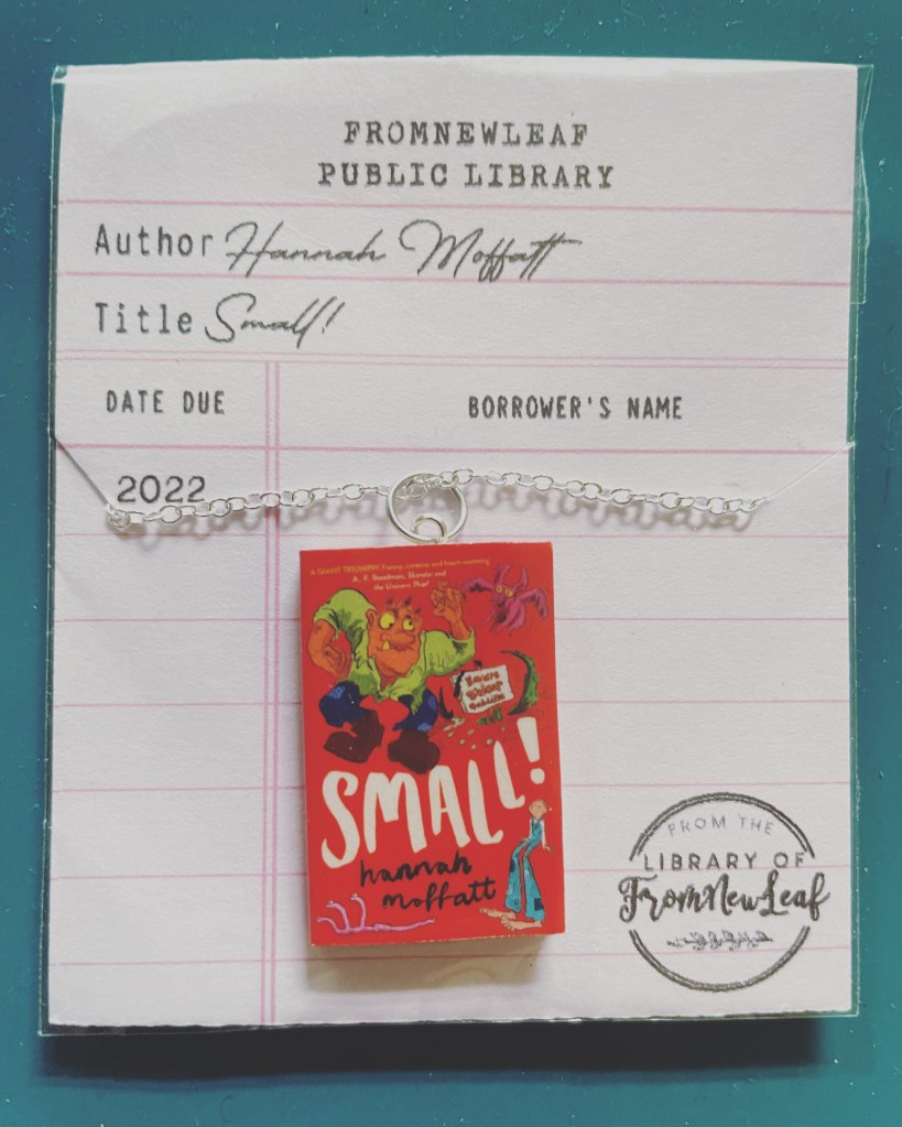 I’ve been wearing my book necklace everywhere – especially when I know I’ll be dropping into a bookshop and asking to sign copies of Small! I’m not entirely sure what the booksellers make of me when I walk in madly pointing at my neck saying, ‘I wrote this! Honest! Can I sign it?’ But no one’s arrested me yet and, on the whole, it’s been a pretty good icebreaker.